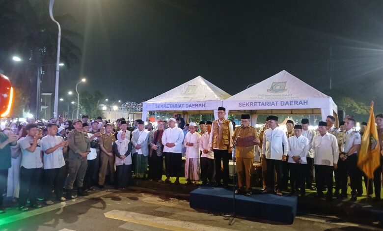 SABBA.id, Tangerang Raya - Gubernur Banten Andra Soni melepas 393 jemaah haji kloter 01-JKB Kota Tangerang di Masjid Raya Al-A’zhom, Jalan Satria – Sudirman, Kelurahan Sukaasih, Kecamatan Tangerang, Kota Tangerang, Selasa (21/4/2026) malam. Untuk pertama kalinya, para jemaah diberangkatkan melalui Asrama Haji Cipondoh.