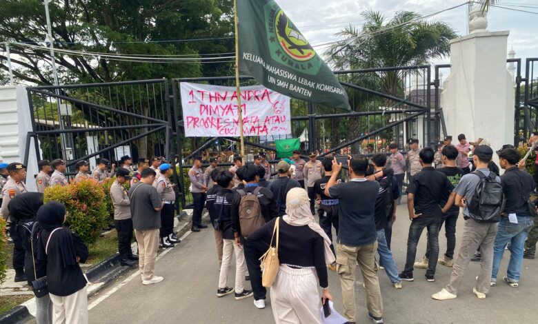 Serang – Ratusan massa dari KUMALA Perwakilan Serang menggelar aksi demonstrasi untuk menyampaikan aspirasi terkait satu tahun kepemimpinan Gubernur dan Wakil Gubernur Banten, Andra Soni dan Dimyati Natakusumah. Aksi ini merupakan bentuk keprihatinan dan kekecewaan terhadap kinerja pemerintah yang dinilai belum maksimal dalam menjalankan program serta memenuhi hak-hak rakyat.